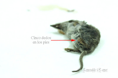 A diferencia de los roedores, poseen cinco dedos minúsculos tanto en las manos como en los pies. Sus huellas son muy difíciles de encontrar, quizás deberíamos afinar mucho la vista para dar con ellas, dado a que su peso es tan pequeño que apenas ejerce presión sobre el sustrato.